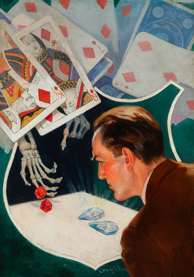 Published by Street & Smith between 1915 and 1949, Detective Story Magazine was one of the first pulp magazines devoted to detective fiction. In addition to stories by a number of notable authors, including Agatha Christie and Sir Arthur Conan Doyle, the long-running publication featured eye-catching artwork on its covers. This painting by illustrator John A. Coughlin, who contributed to several Street & Smith titles, graced the cover of the December 10, 1933, issue of Detective Story Magazine.