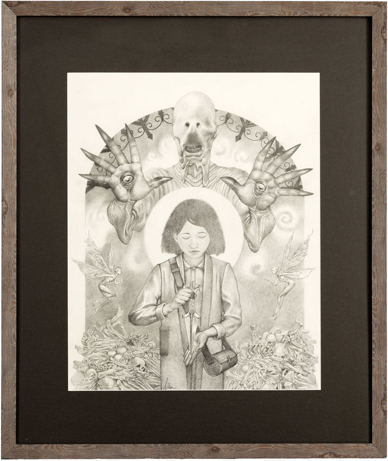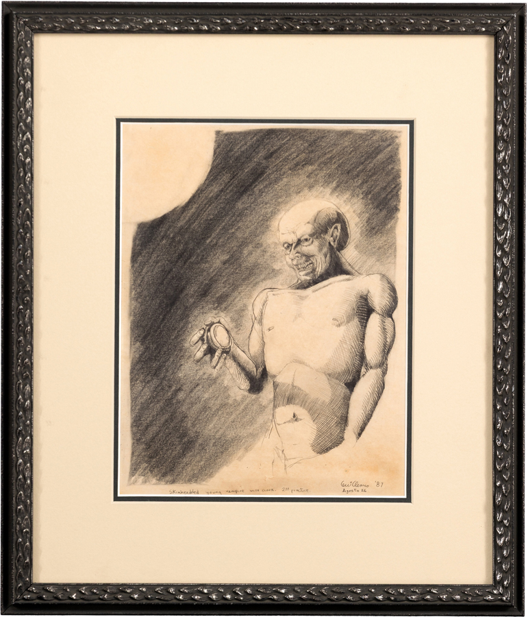 “I started drawing ideas for Cronos in the early 1980s and did so in pencil. I used some of these images to apply to Dick Smith’s FX makeup course, which changed my life and allowed me to found Necropia Inc. and thus make Cronos. This is one of those images and the only one ever to be sold at auction. Likely, it will be the very last one I part with, too.”