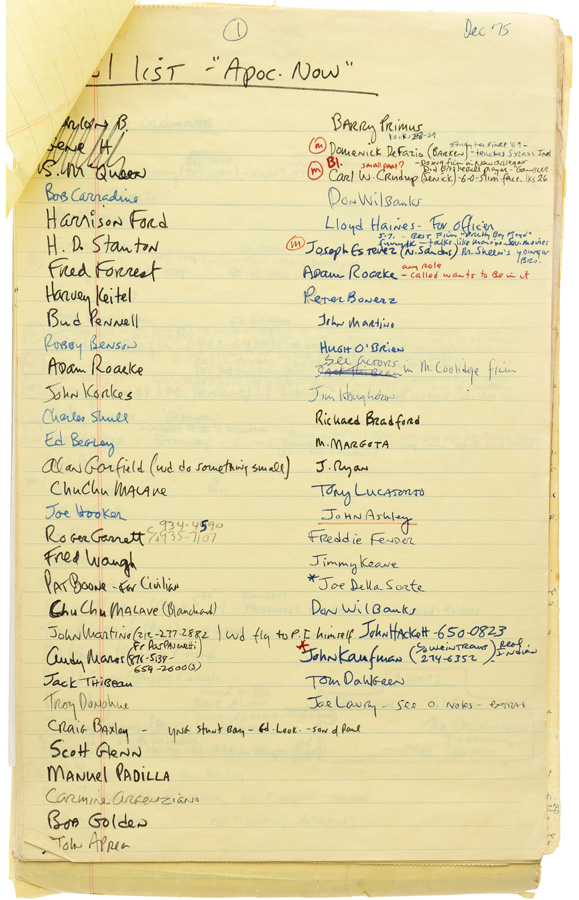 Some of Roos’ casting notes for ‘Apocalypse Now’