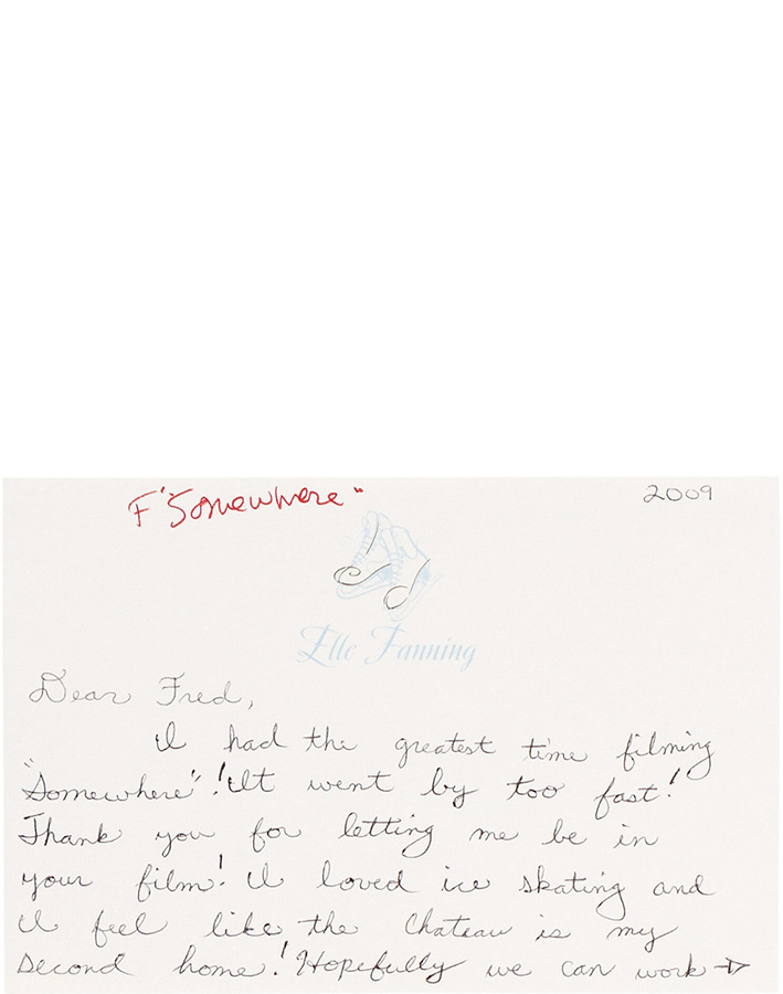 Then come the discoveries – the one-of-a-kind pieces that make this more than just a professional archive. There’s a heartfelt letter from Martin Sheen, scribbled while on a train. A job inquiry from a young Spike Lee, freshly graduated from NYU and hungry to work on The Cotton Club. A thank-you card from Elle Fanning for helping her land her breakout role in Somewhere. A pair of postcards from Carrie Fisher, written while she traveled through Europe on hiatus from Star Wars. Each letter is a thread in the larger fabric of Roos’ impact – proof of the relationships he built and the futures he helped shape.