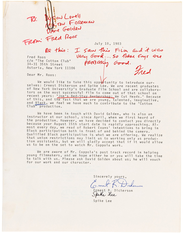 Roos’ archive features a wide-ranging collection of letters, notes, and correspondence sent to him by major film industry figures, including Spike Lee and Elle Fanning.