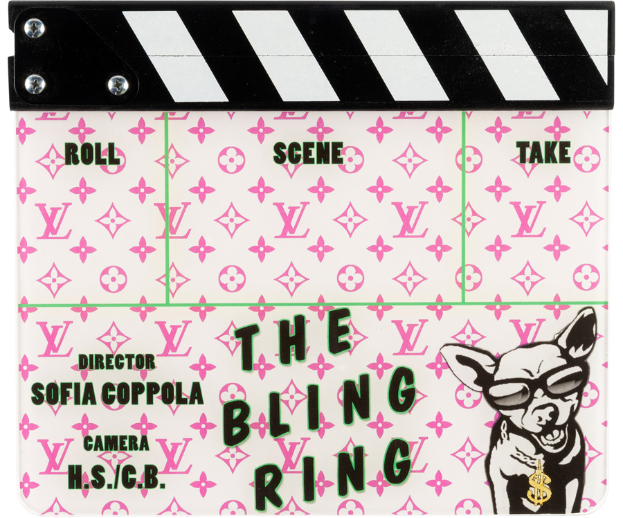 A clapperboard from 2013’s ‘The Bling Ring,’ complete with pink Louis Vuitton monogram