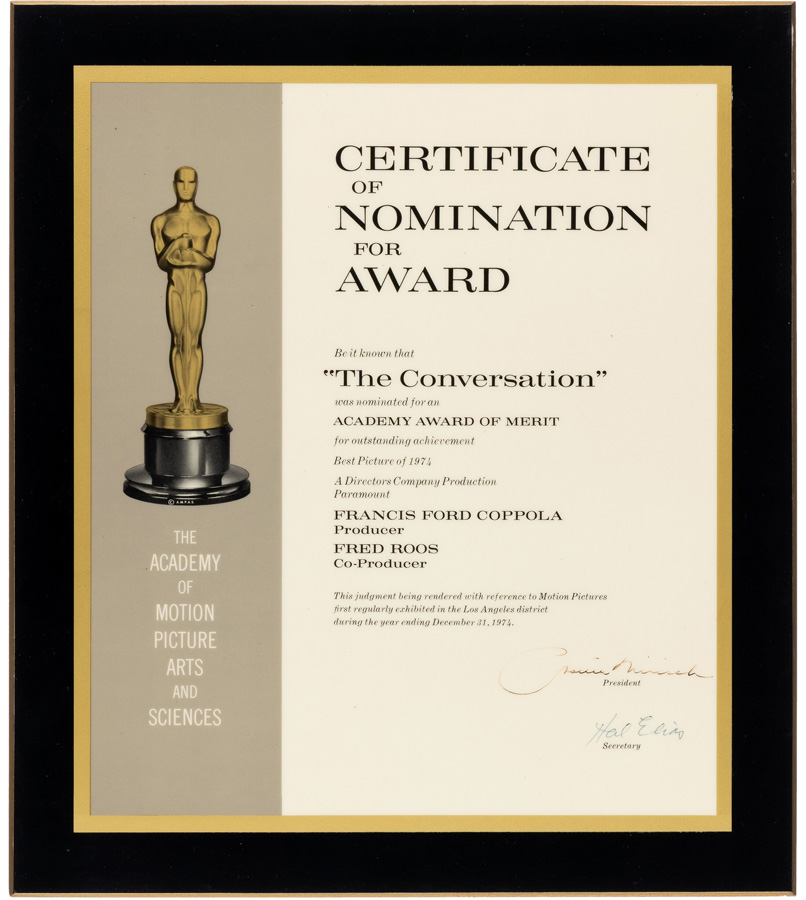 Roos’ Academy Award nomination plaques for ‘The Conversation’ and ‘The Godfather Part II’