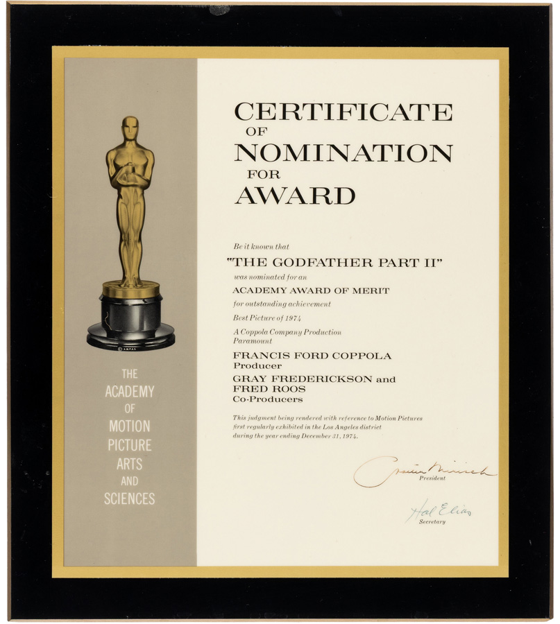 Fred Roos with his Academy Award for 1974’s ‘The Godfather Part II.’ This photograph is one of 100-plus behind-the-scenes photos and press materials available in a single lot in Heritage’s December 9-10 Hollywood/Entertainment Signature® Auction.