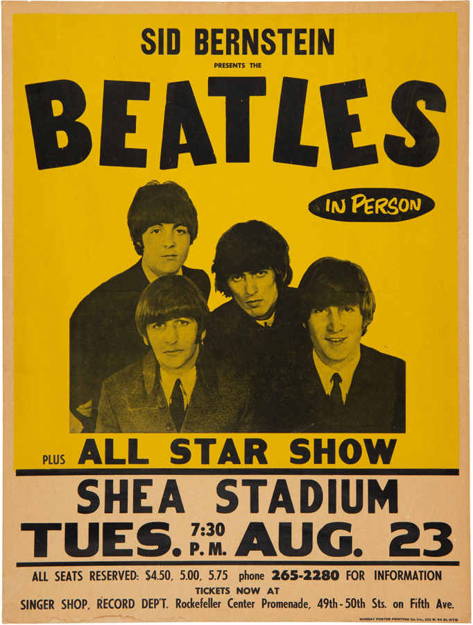 This original poster promoting The Beatles’ August 23, 1966, concert at New York’s Shea Stadium realized $275,000 in an April 2022 Heritage auction.