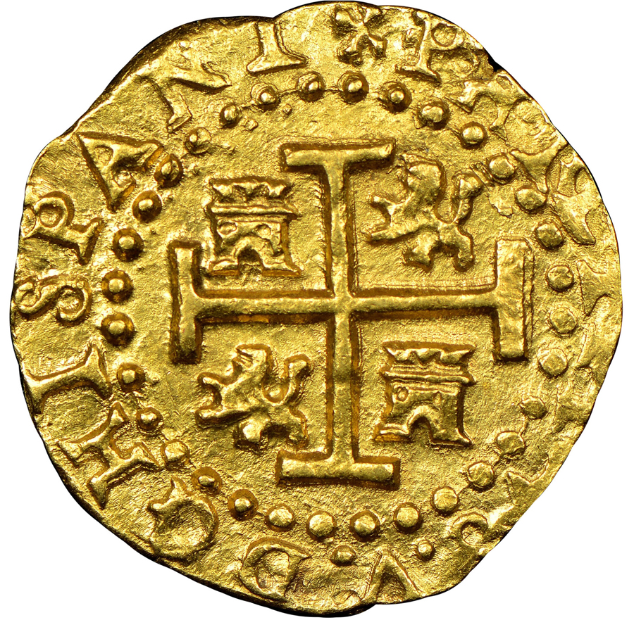 This circa-1550 Charles & Johanna gold splash, or ‘oro corriente,’ was recovered from the ‘Golden Fleece’ shipwreck in the northern Caribbean. Available in Heritage’s February 23 Spotlight: Shipwreck & Treasure World Coins Showcase Auction.