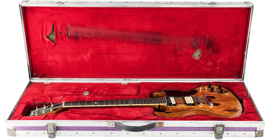 When Zappa, a known SG enthusiast who began and ended his tours in Arizona, played Phoenix in July 1974, Nagel made his way backstage and showed him the guitar. Zappa didn’t hesitate. “He took it inside the venue,” Nagel recalls, “and sent somebody back out to get me. Frank said, ‘Yeah, I’ll take the guitar. Come by tomorrow and I’ll give you cash.’” For $600, Zappa acquired a future icon. “Later on, I heard it was his favorite guitar,” Nagel says.