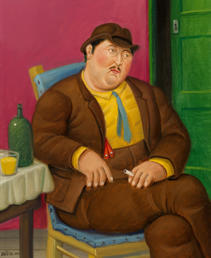 Seated Man, a 2000 oil-on-canvas by Fernando Botero, hits all the notes that have made the Colombian painter and sculptor that rare combination: a crowd-pleasing household name whose paintings hold up to critical scrutiny. In this work, which realized $275,000 in a May 2018 Heritage auction, Botero revels in the exaggerated form of a man at rest but also lingers lovingly over small details, like a colorful still life set atop a table.