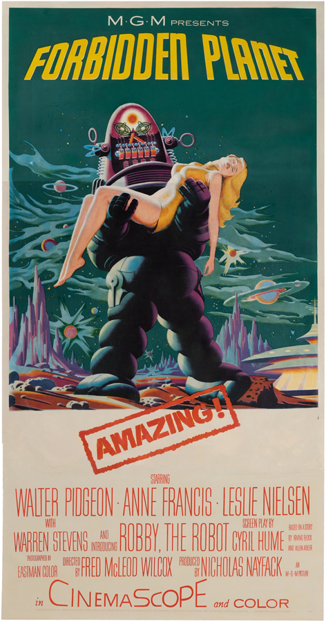 This 1956 three-sheet poster for ‘Forbidden Planet,’ MGM’s first big-budget sci-fi production, is available in Heritage’s February 11–12 Yakob Zentner Collection Hollywood/Entertainment Signature® Auction.