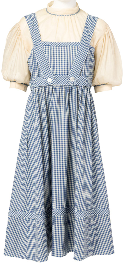 Judy Garland ‘Dorothy Gale’ original signature crème blouse from ‘The Wizard of Oz ‘(MGM, 1939), accompanied by a gingham dress used for touring purposes