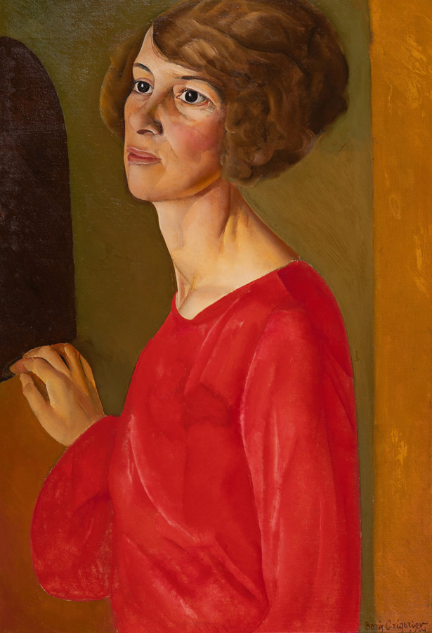 Grigoriev painted this portrait of New York gallerist Gladys Roosevelt Dick during his first visit to the United States. The circa 1922 work stands among his finest achievements in portraiture, exemplifying the distinctive synthesis of neoclassical structure and expressionist intensity that marked his painting of the early 1920s.